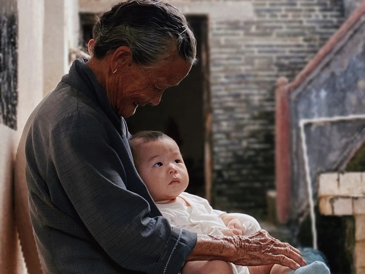 奶奶坐在藤椅上,將我的小孩擁在懷里,充滿愛意的眼神一刻也沒從小孩身上挪開,筋脈突兀的手輕拍著,生怕手中的老繭刮到幼兒嬌嫩的皮膚。
