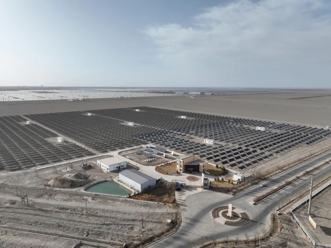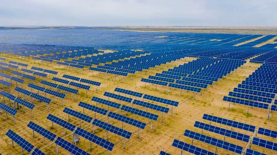 在黃沙漫漫的戈壁灘建設(shè)光伏發(fā)電基地,將炙熱的陽(yáng)光轉(zhuǎn)化為充沛的綠色動(dòng)能,讓黃沙變“藍(lán)?!?。
