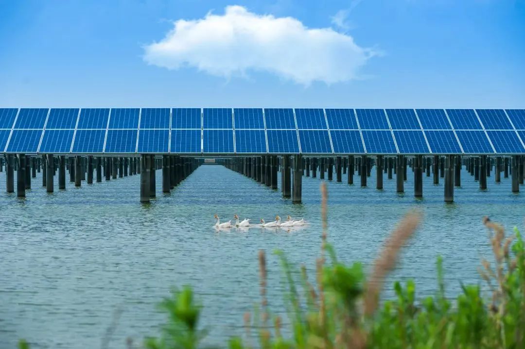 安徽省馬鞍山市當(dāng)涂縣的中廣核當(dāng)涂太白光伏項(xiàng)目是典型的漁光互補(bǔ)電站,通過(guò)打樁、抬高支架,光伏板得以在水面上方接收太陽(yáng)光的照射,進(jìn)而產(chǎn)生電能,廣闊的水面可以用于漁業(yè)養(yǎng)殖,例如養(yǎng)殖魚(yú)蝦,或者種植水產(chǎn)農(nóng)作物,光伏+農(nóng)業(yè)優(yōu)勢(shì)互補(bǔ),板上光伏發(fā)電,板下漁業(yè)養(yǎng)殖,既提高了單位面積產(chǎn)值,也為當(dāng)?shù)貛?lái)了更多的就業(yè)崗位。