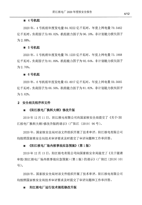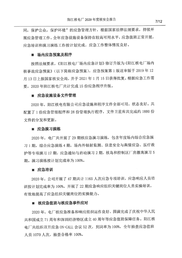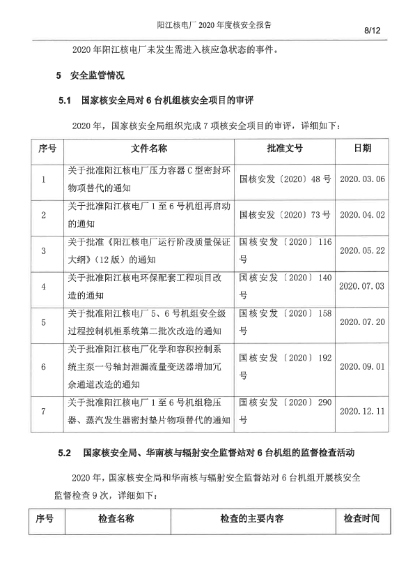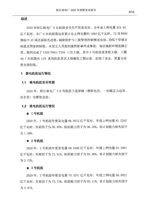 陽江核電廠2020年度核安全報(bào)告